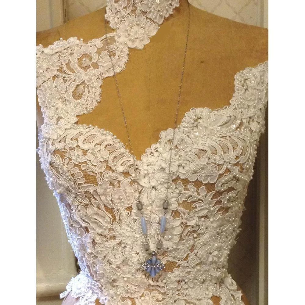 This beautiful one-of-a-kind necklace can be worn as your “something blue” for your wedding, for a special occasion or with jeans for every day. It is stunning worn alone or as a layering piece. It’s so pretty!