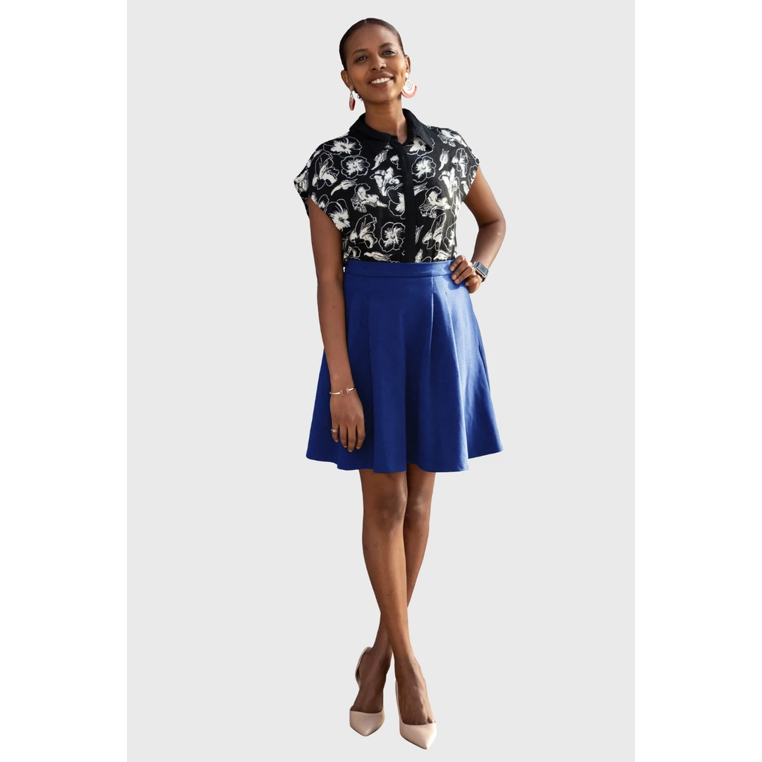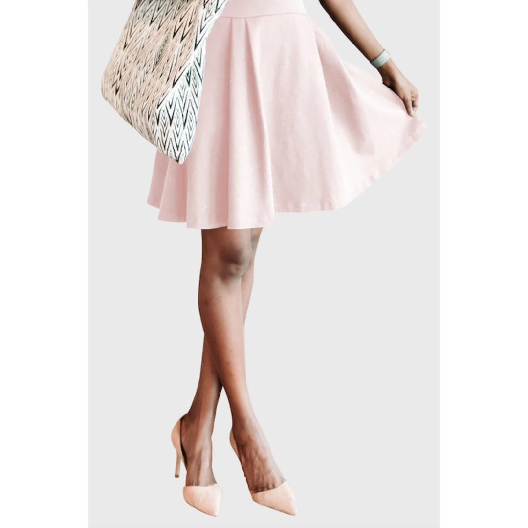 A flirty, feminine A-line skirt that moves and twirls beautifully, with a waistband hitting at the natural waist. Plus pockets! This beauty is created in a gorgeous custom-developed, luxe, and wrinkle-resistant Ponte de Roma fabric with just the right amount of stretch that’s perfect for travel. We even have an upgraded hook & eye that’s extra easy to clasp. This style is perfect for “pear-shaped” women and incredibly flattering to showcase a smaller waist and camouflage larger hips. It’s slightly shorter than our other pieces yet still looks great while seated. You can’t even tell the pockets are there! This style is in presales with shipment expected in early September 2019.