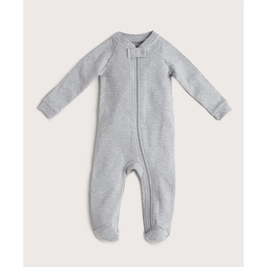 Baby’s Heather Grey Footie Sleeper 9-12 Months. Super soft organic baby’s Footie Sleeper from Wear PACT. Fair Trade Factory. GOTS Certified Organic Cotton