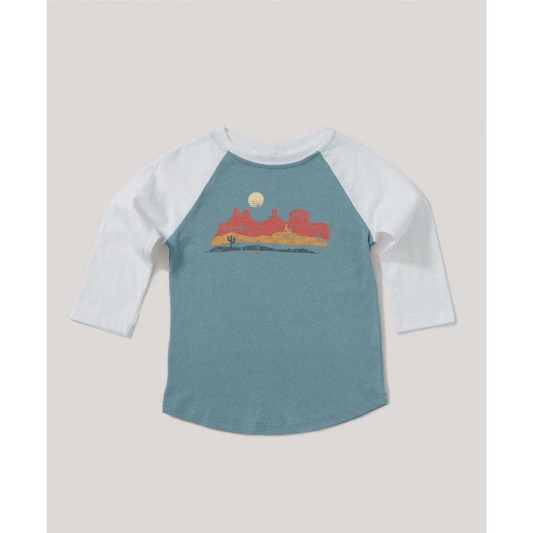 Kid’s Dusty Trail Shortstop Raglan Graphic Tee 2T. Super soft organic kids’s Shortstop Raglan Graphic Tee from Wear PACT. Fair Trade Factory. GOTS Certified Organic Cotton