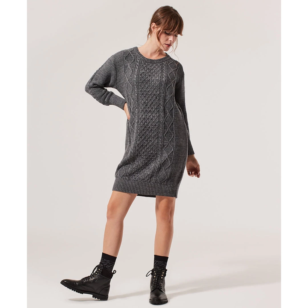 Women’s Charcoal Heather Classic Cable Knit Sweater Dress S. Super soft organic women’s clearance Classic Cable Knit Sweater Dress from Wear PACT. Fair Trade Factory. GOTS Certified Organic Cotton