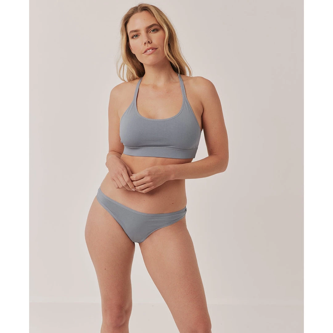 Women’s Smoke Thong 2X. Super soft organic women’s clearance Thong from Wear PACT. Fair Trade Factory. GOTS Certified Organic Cotton