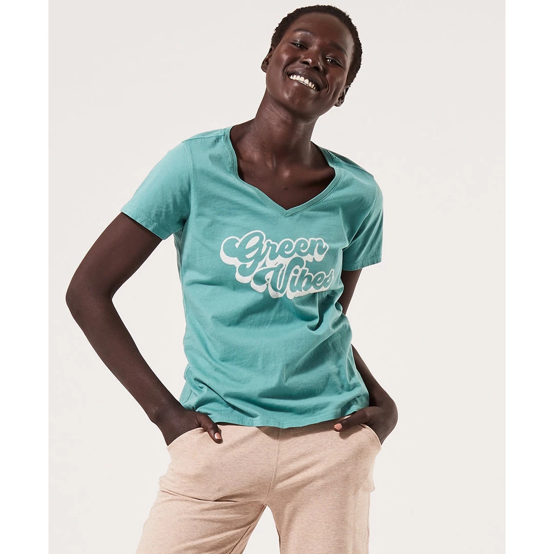 Pact Organic Women Softspun Graphic V-Neck Tee Womens