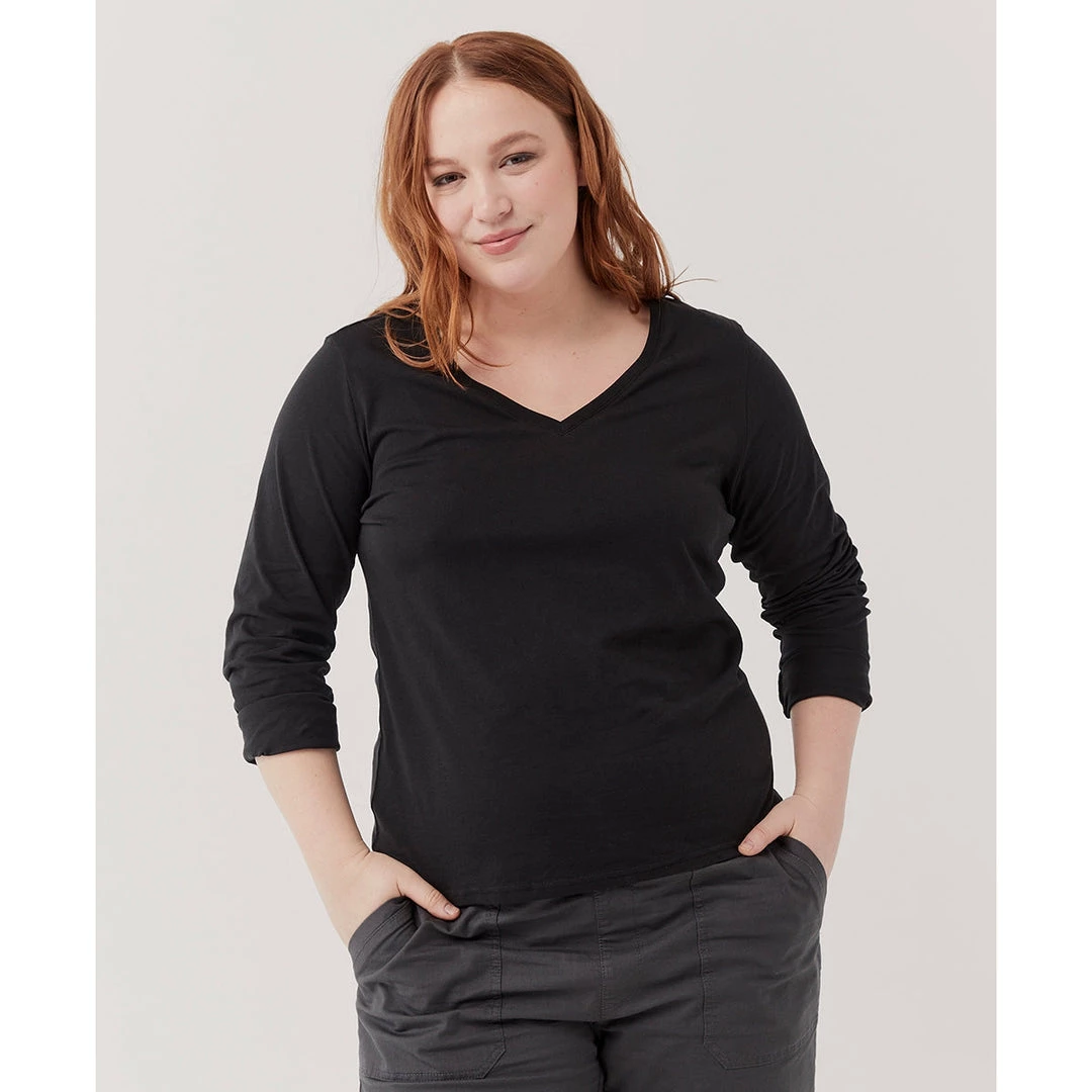 Pact Organic Women Softspun V-Neck Long Sleeve Tee Womens