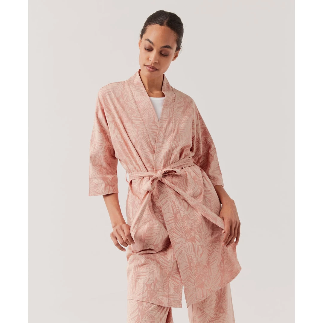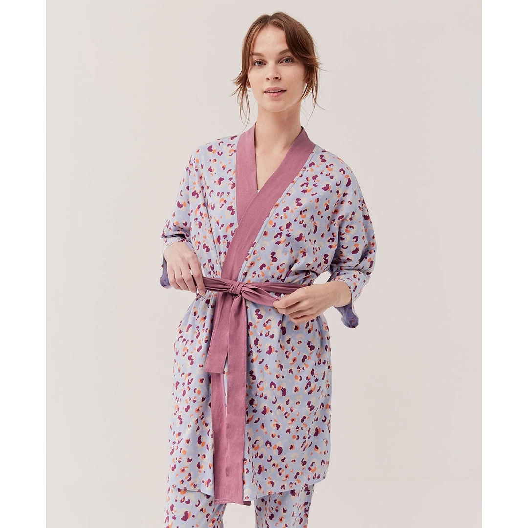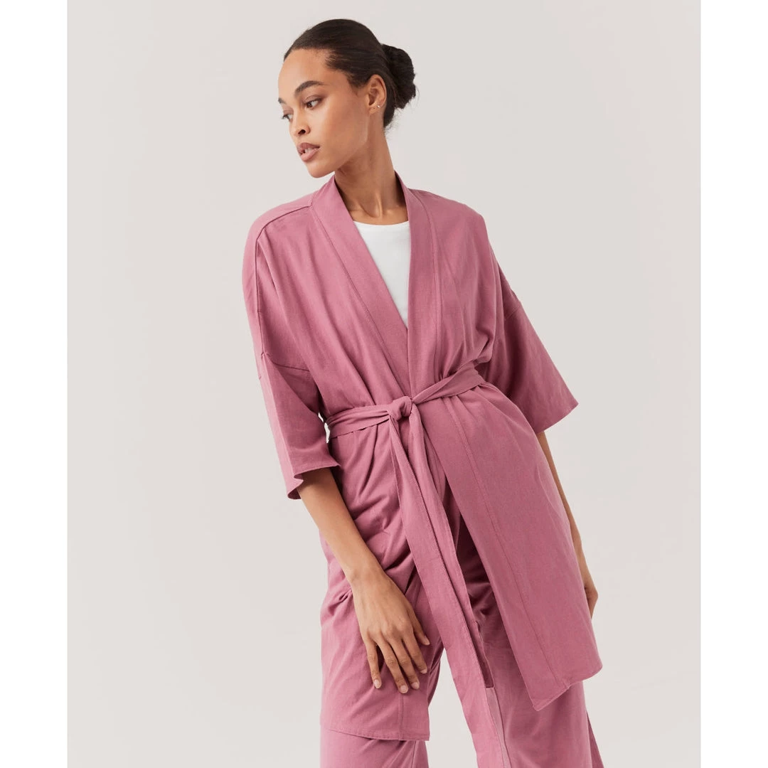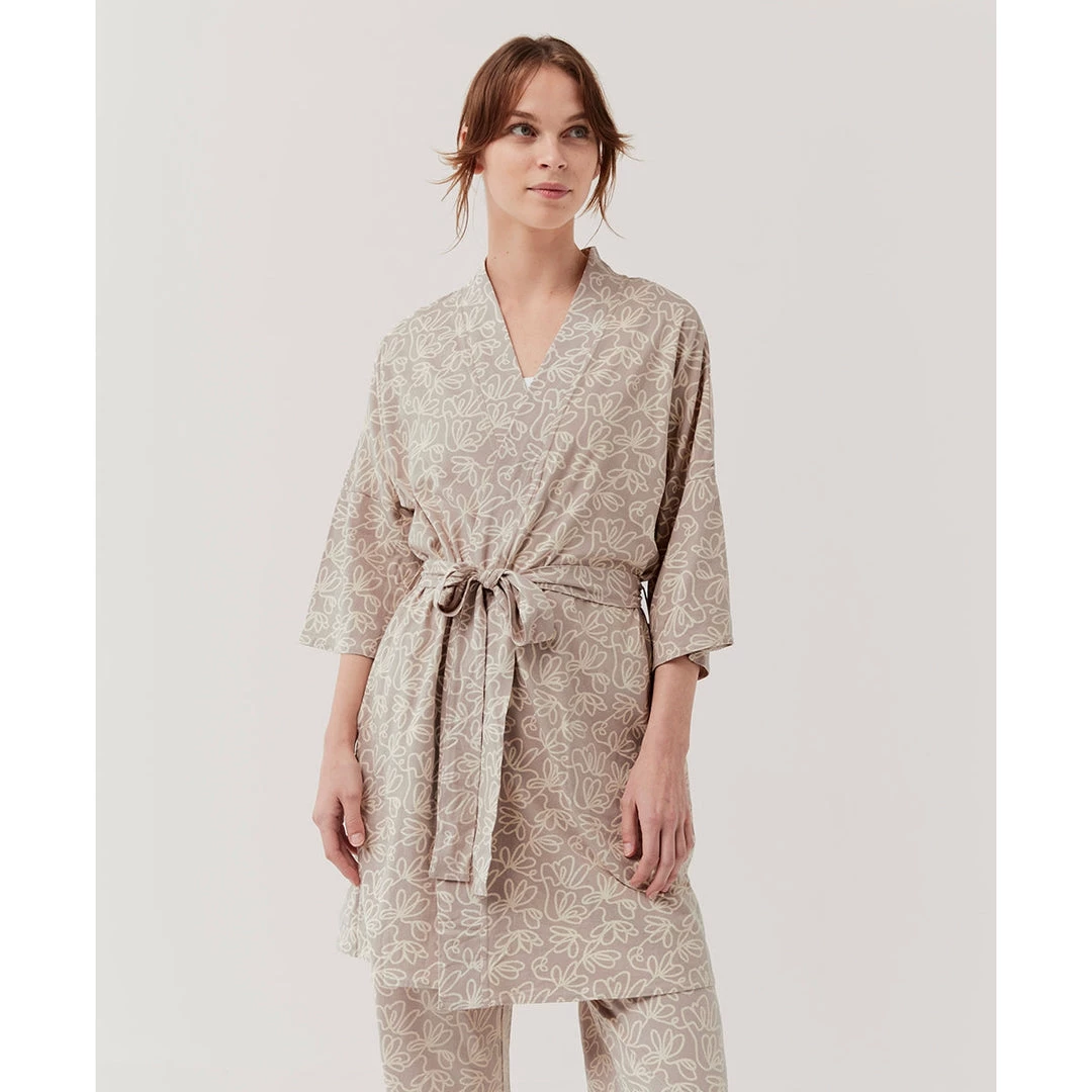 Women’s Oyster Tulip The Staycation Short Robe X2. Super soft organic women’s The Staycation Short Robe from Wear PACT. Fair Trade Factory. GOTS Certified Organic Cotton