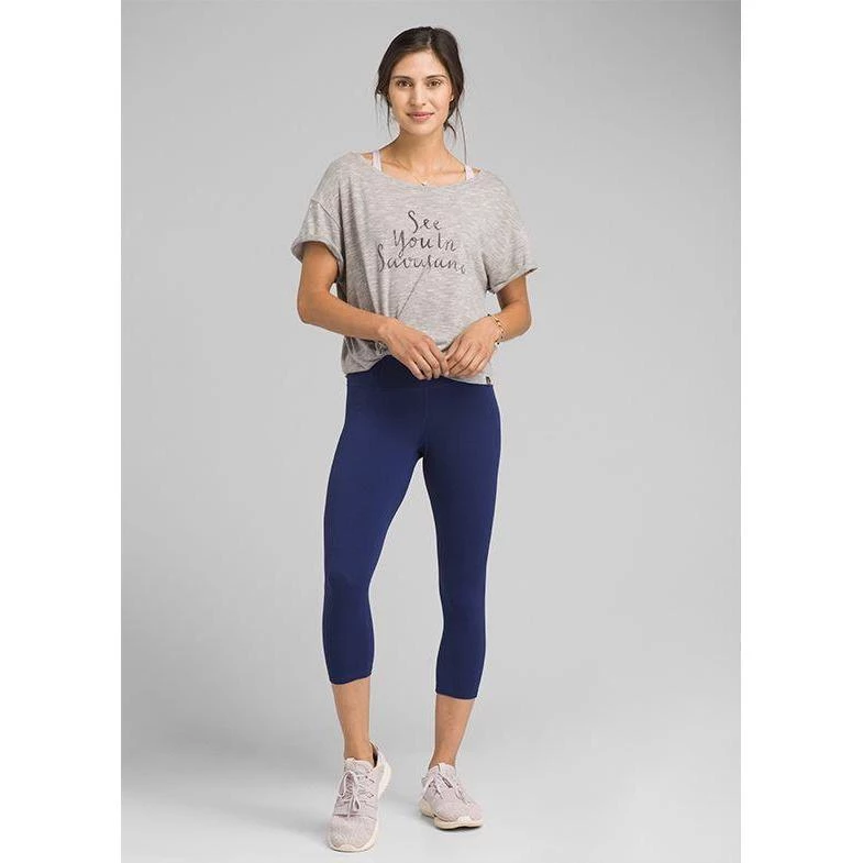 Spring day-to-day look, a pop of personality in yoga, or something to talk about on the wall. Let the Chez Tee speak for you with its fun graphic prints. Pair with your favorite women’s yoga pant, or layer it with the Updrift Top and the Janessa Pant.