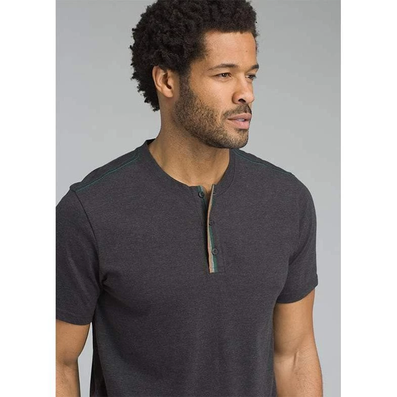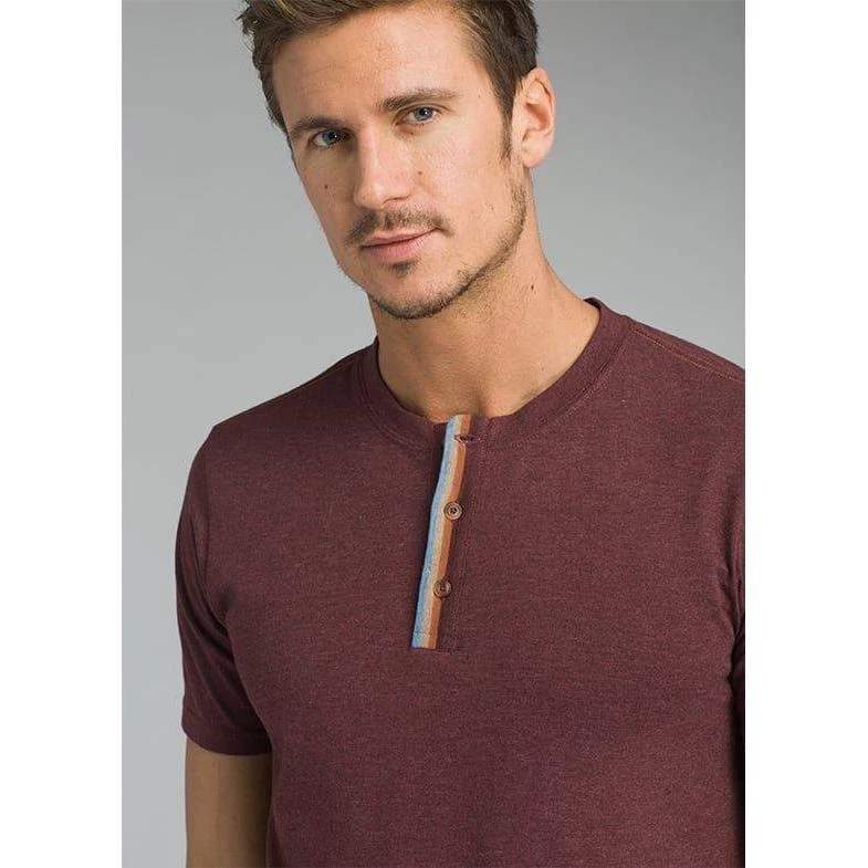 The Garrity SS Henley is made with an organic cotton/recycled polyester blend featuring engineered strip detailing.