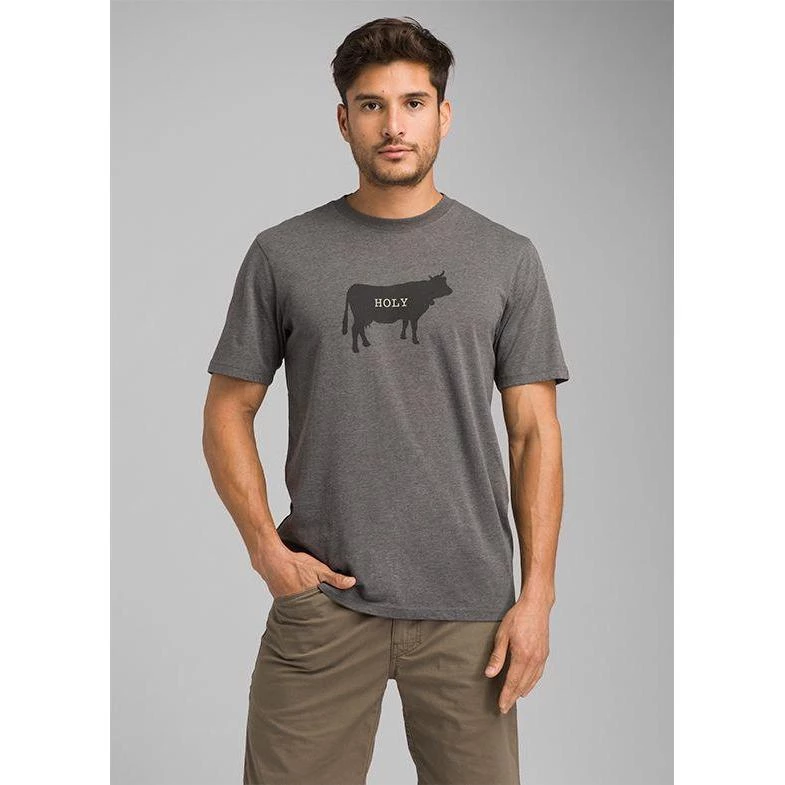Your clothes should say something about your personality. What do you want your graphic tee to say about you? This lightweight Holy Cow Journeyman T-shirt features a graphic of a cow with the word ‘HOLY’ over it.