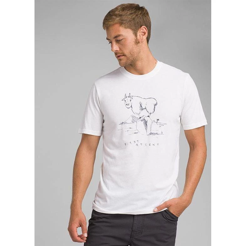 Organic cotton graphic tee :: Slim fit, graphic tee featuring a goat on a rock with the phrase, ‘First Ascent.’ :: An all-day weekend go-to.