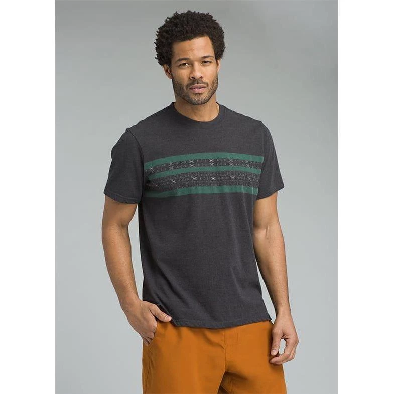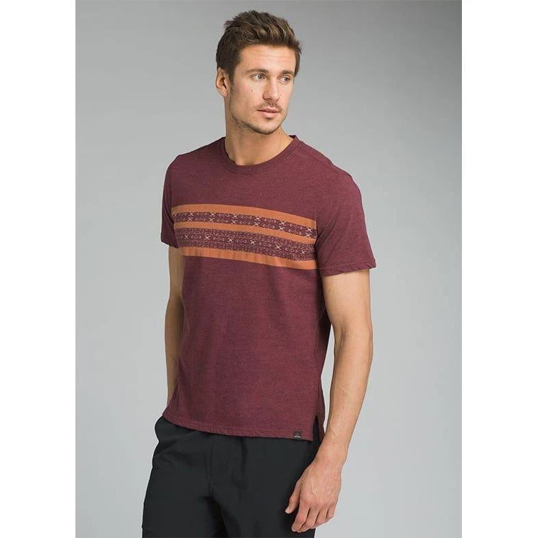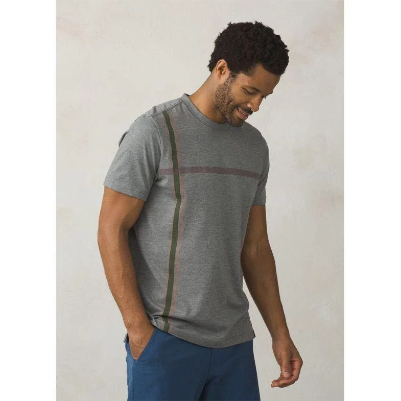 The Garrity SS Crew is made with an organic cotton/recycled polyester blend featuring a printed stripe design.