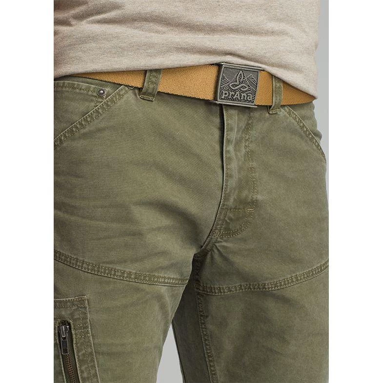 The heavy duty prAna Union Belt fastens with a custom metal buckle that hides a bottle opener on its back.