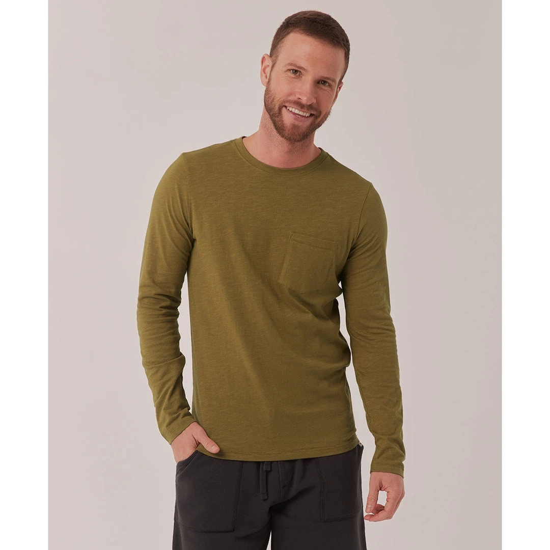 Men’s Green Moss Textured Long Sleeve Tee S. Super soft organic men’s Textured Long Sleeve Tee from Wear PACT. Fair Trade Factory. GOTS Certified Organic Cotton