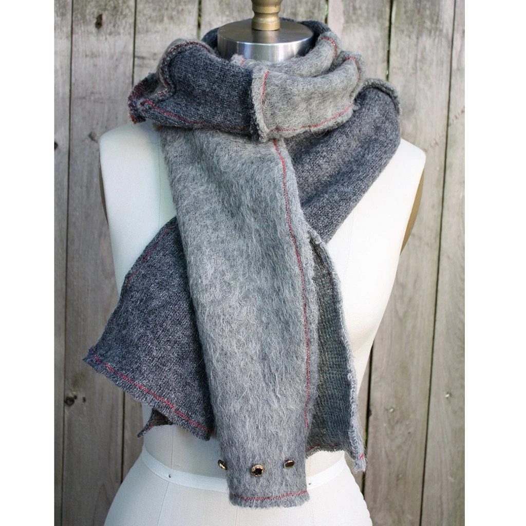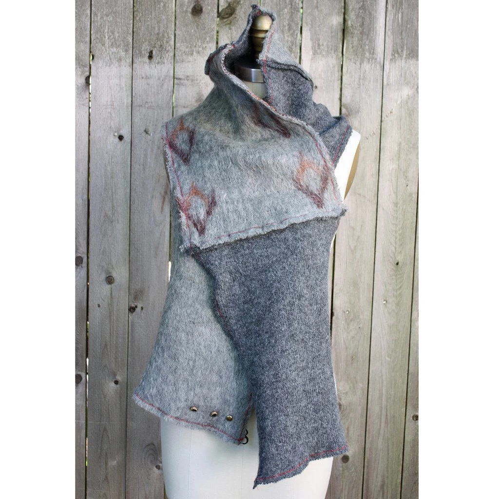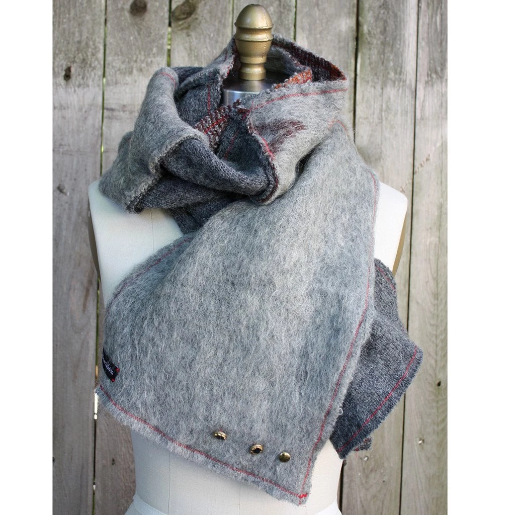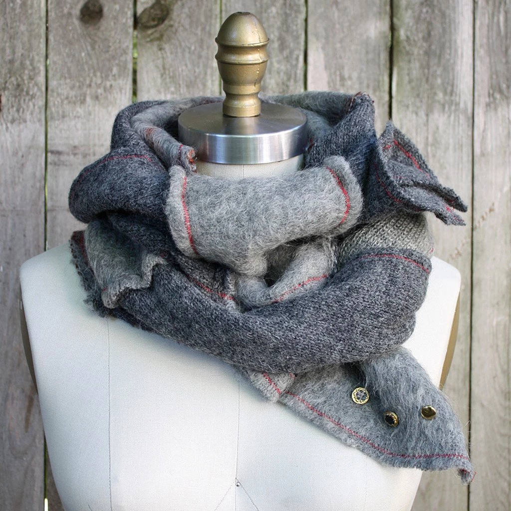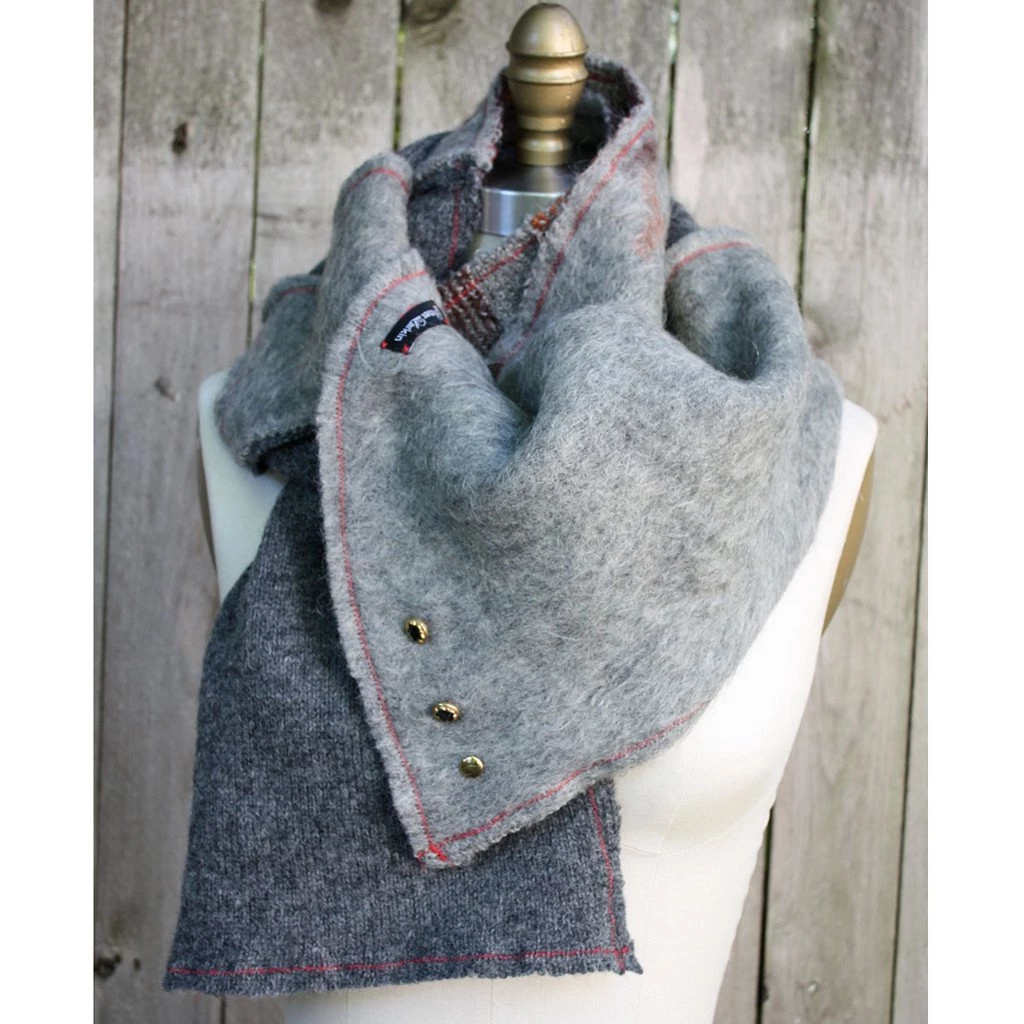 This multi-texture, modern-patchwork scarf is Eco-friendly since the materials are on their second life cycle. I take the unwanted and turn them into the wanted. This one is repurposed from well-kept wool sweaters.