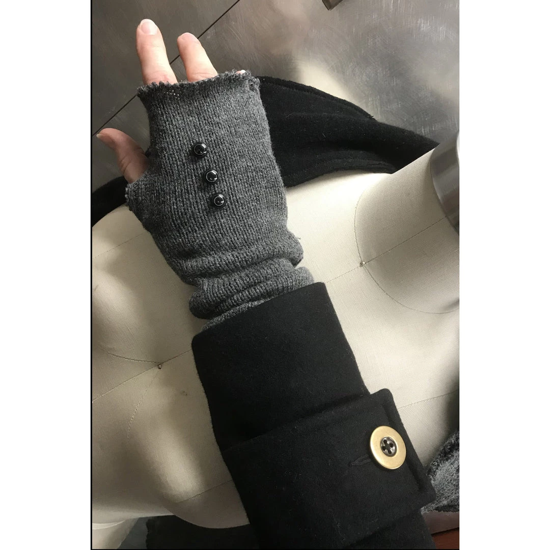 Once a sweater someone no longer needed, now long gloves without fingers so you can be fabulous, functional and warm. I take the unwanted and turn them into the wanted. Because of my creative process, each piece is totally unique and cannot be replicated. And since all my work is handmade by me, Sutter Larkin is 100% sweatshop free. The time and TLC I put into each and every one keeps your investment around for a long time, ensuring many memories in the making together.Â