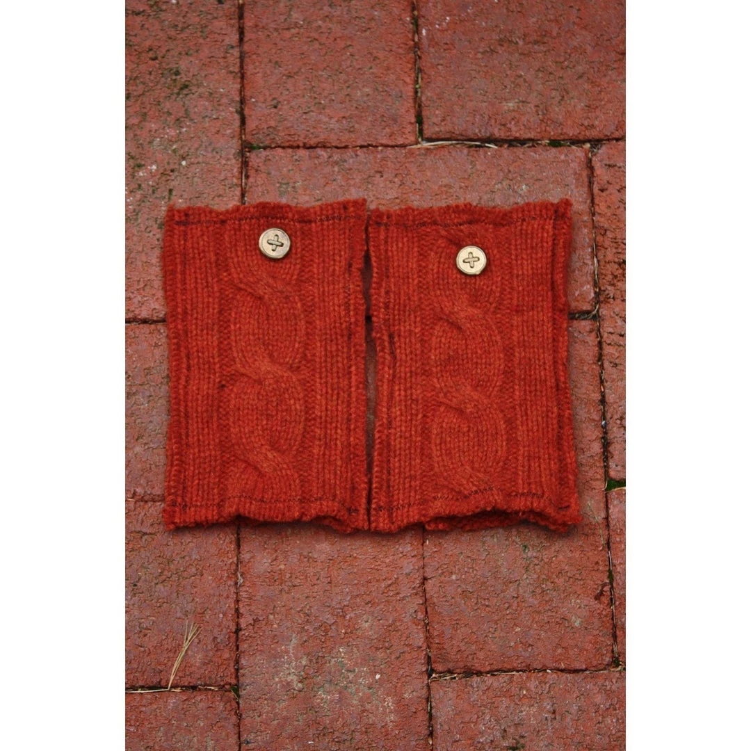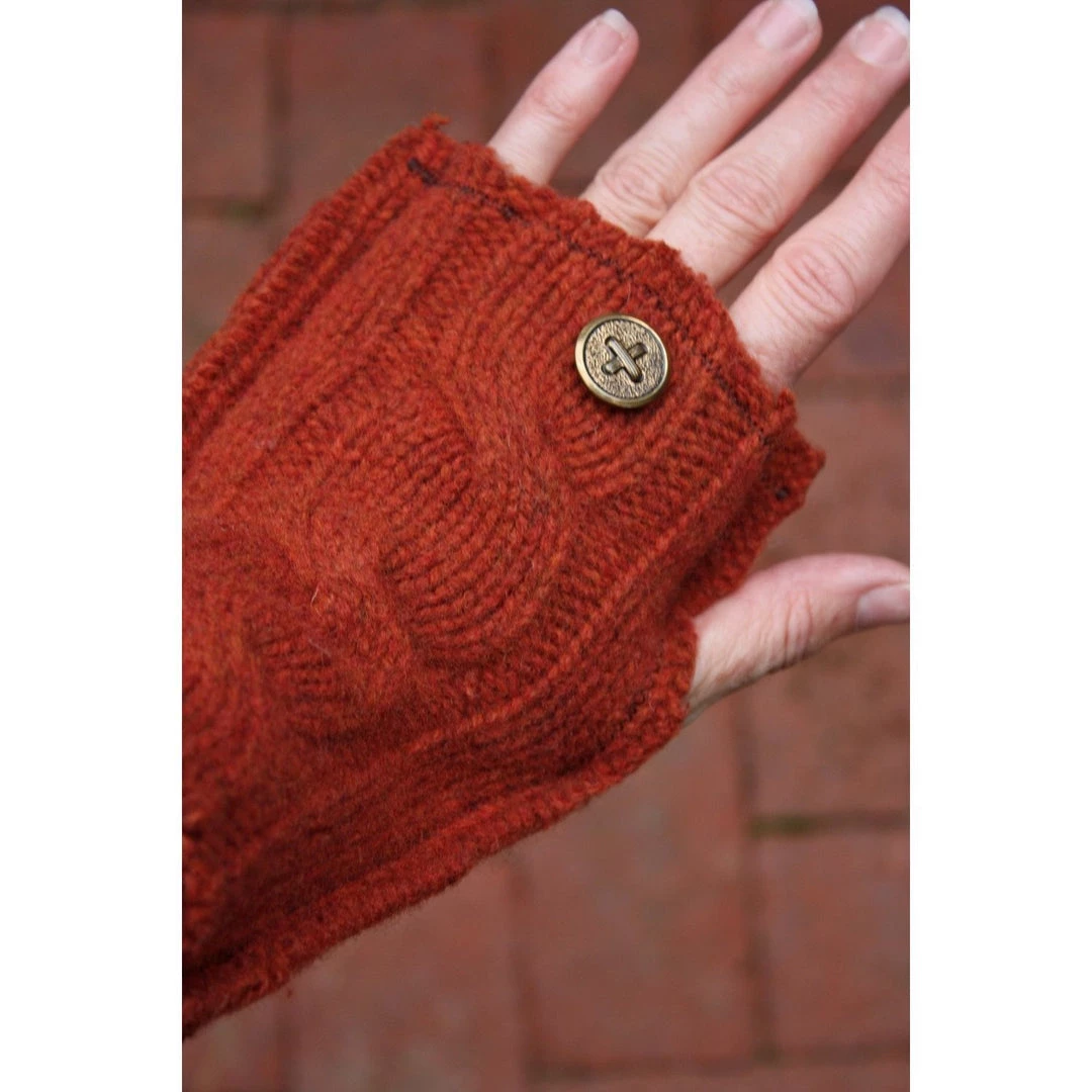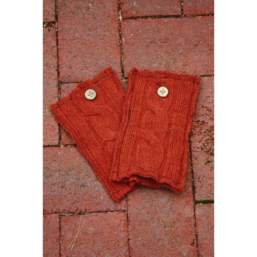 Made with remnants from a sweater, these fingerless gloves are Eco-Friendly since the materials are environmentally responsible. Added buttons for stylish details. Blended together, you have a modern, stylish, true one-of-a-kind.