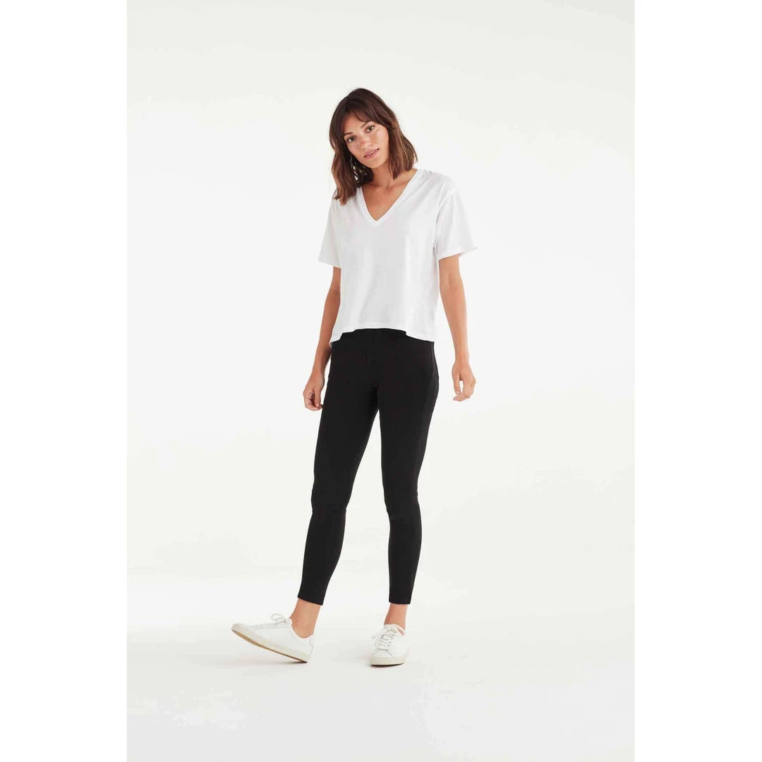 Not just any t-shirt, this one can be wornfour different ways. Wear it with the V-neck in front or back.There’s also a hidden slit, so that you can tie it in a side knot. Boxy and cropped, with longer sleeves, we love the fit of this versatile t-shirt.Insider tip: use codeeverydaycapsuleto purchase all five items inTheEverydayCapsule for $479! *Cannot be combined with any other offer.DETAILS Made inLos Angeles(learn morehere) Made from100%BCI Supimacotton Machine wash cold,tumble dry lowFIT Runs true to size Intentionallyboxy andcropped fit The model is wearing a size XS, and she is 5’9″ See this item pictured in more sizeshere Seeapproximate garment measurements below. Reference oursize chartfor body measurements XSSMLXLGarment: Bust20.2521.2522.2523.2524.25Garment: Length21 5/822 1/822 5/8″23 1/823 5/8Garment:Across shoulder17 3/817 7/818 3/818 7/819 3/8SHIPPING & RETURNS Free U.S. Shipping Items inunworn and unaltered condition can be returned within 30 days of purchase for a refund* (learn morehere)
