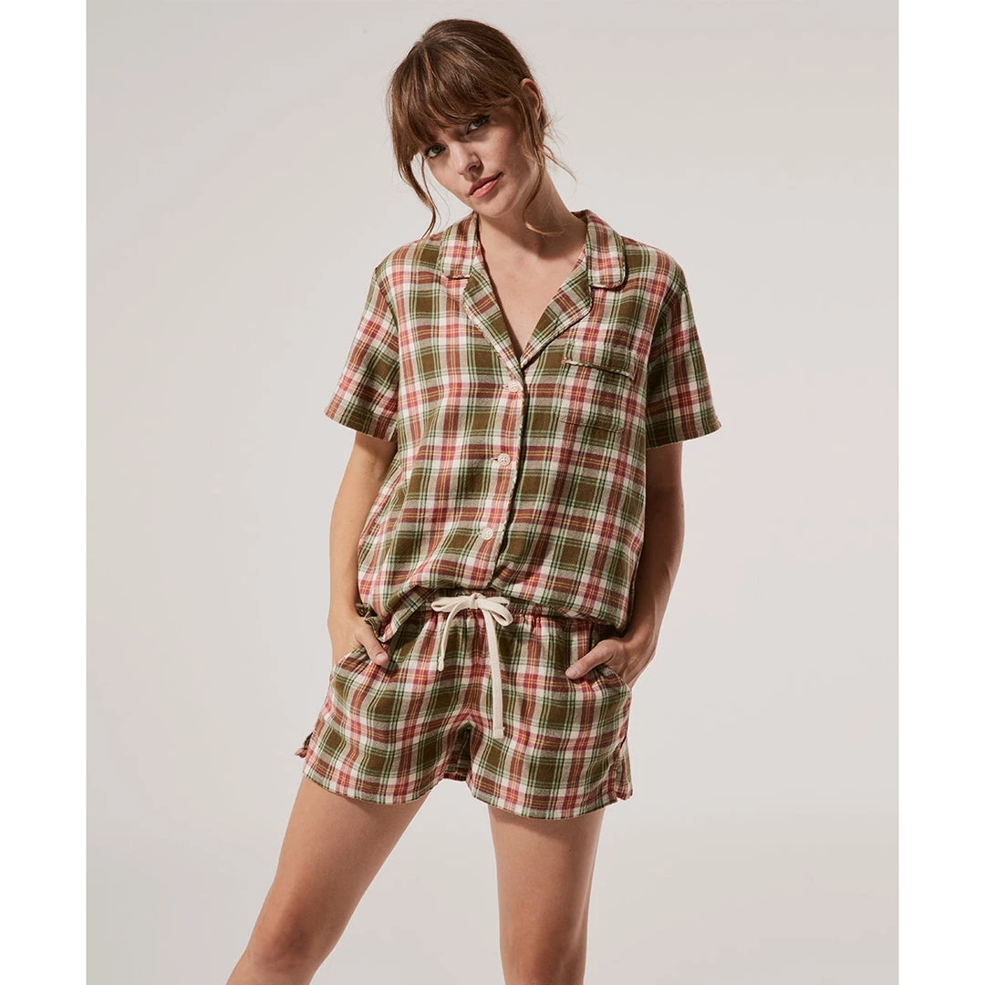 Women’s Steel Plaid Flannel Sleep Set (Top + Short) XL. Super soft organic women’s clearance Flannel Fireside Sleep Set from Wear PACT. Fair Trade Factory. GOTS Certified Organic Cotton