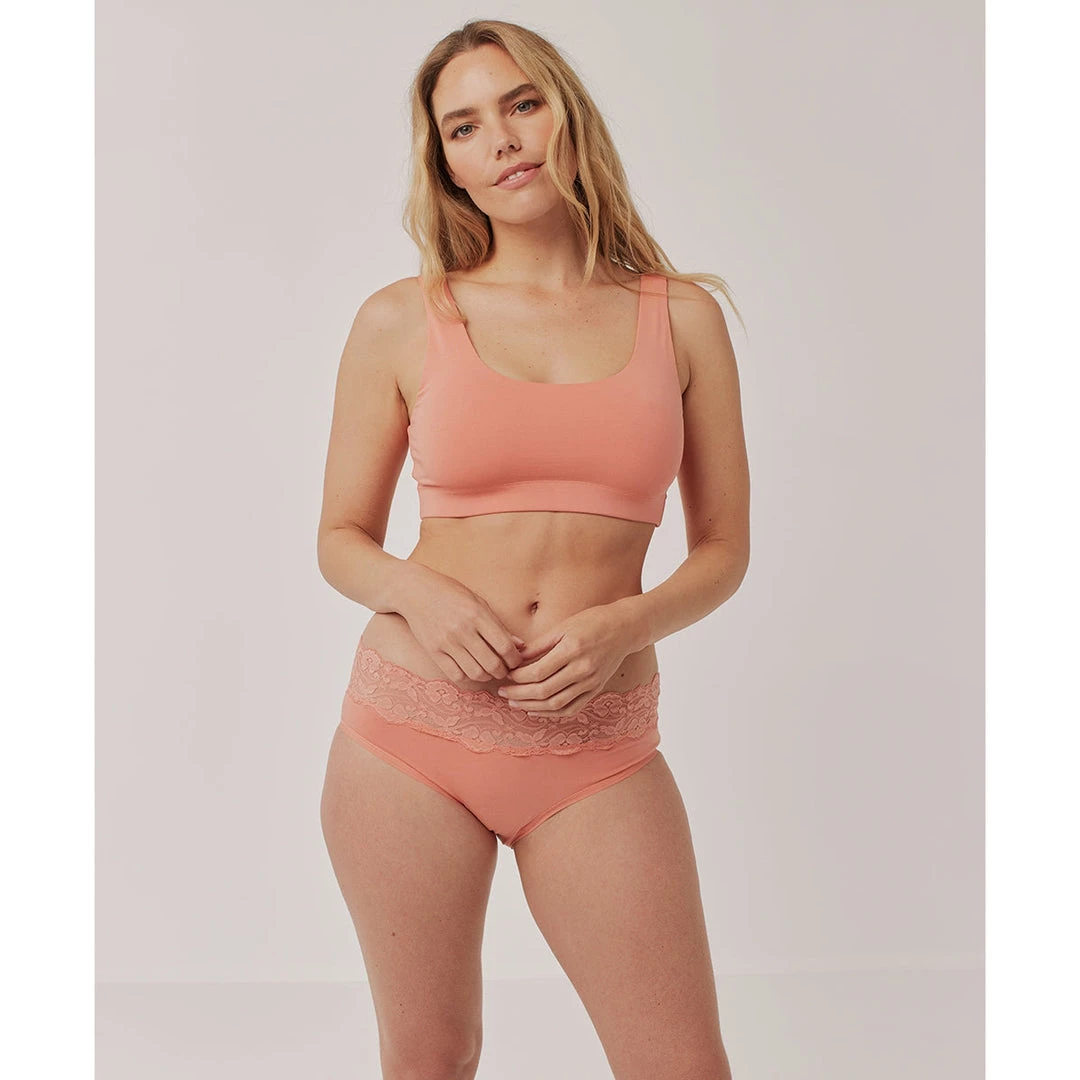 Women’s Canyon Clay Double Scoop Bra 2X. Super soft organic women’s Double Scoop Bra from Wear PACT. Fair Trade Factory. GOTS Certified Organic Cotton