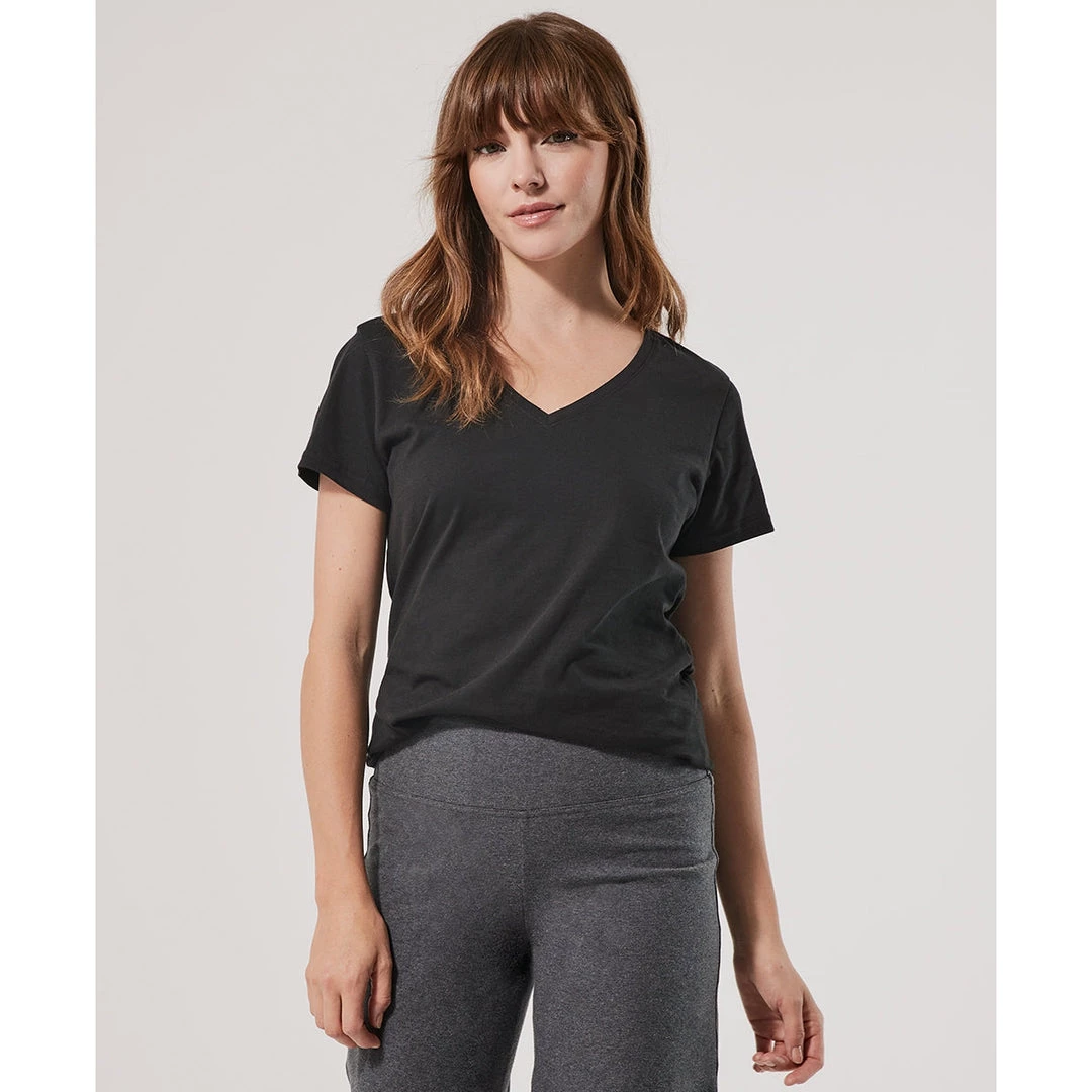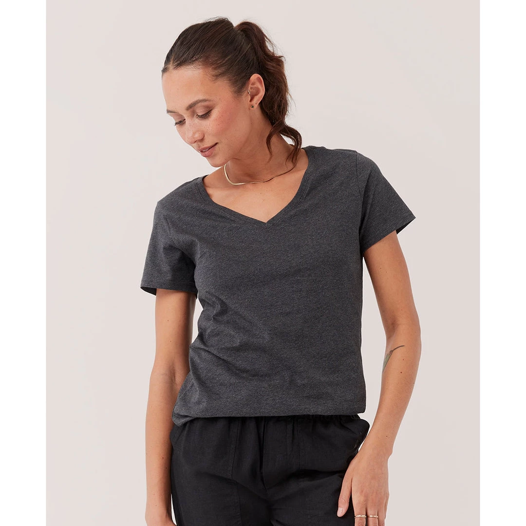 Women’s Charcoal Heather Softspun V-Neck Tee L. Super soft organic women’s Softspun V-Neck Tee from Wear PACT. Fair Trade Factory. GOTS Certified Organic Cotton